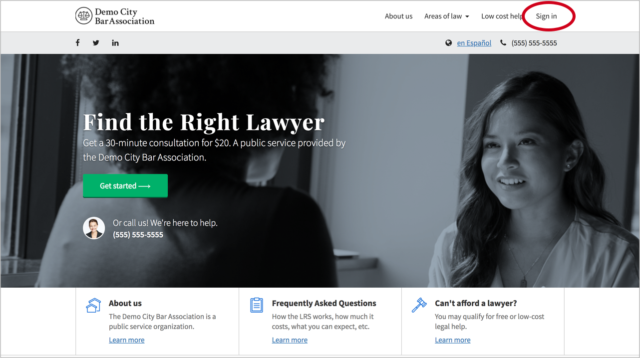 - Go to your LRS portal's homepage and click on the "Sign in" link in the upper righthand corner of the screen: